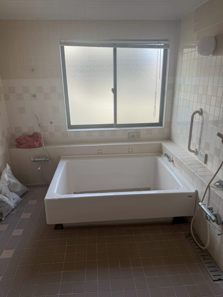 お風呂広〜い😀大浴場…まではいかないけど、でもほぼ大浴場みたいに広い‼️‼️が、このお風呂は男性陣のお風呂です〜🤪女性陣のお風呂は…まだ工事中ですわ〜🙄と言っても写真のもバリバリ工事中だけどw