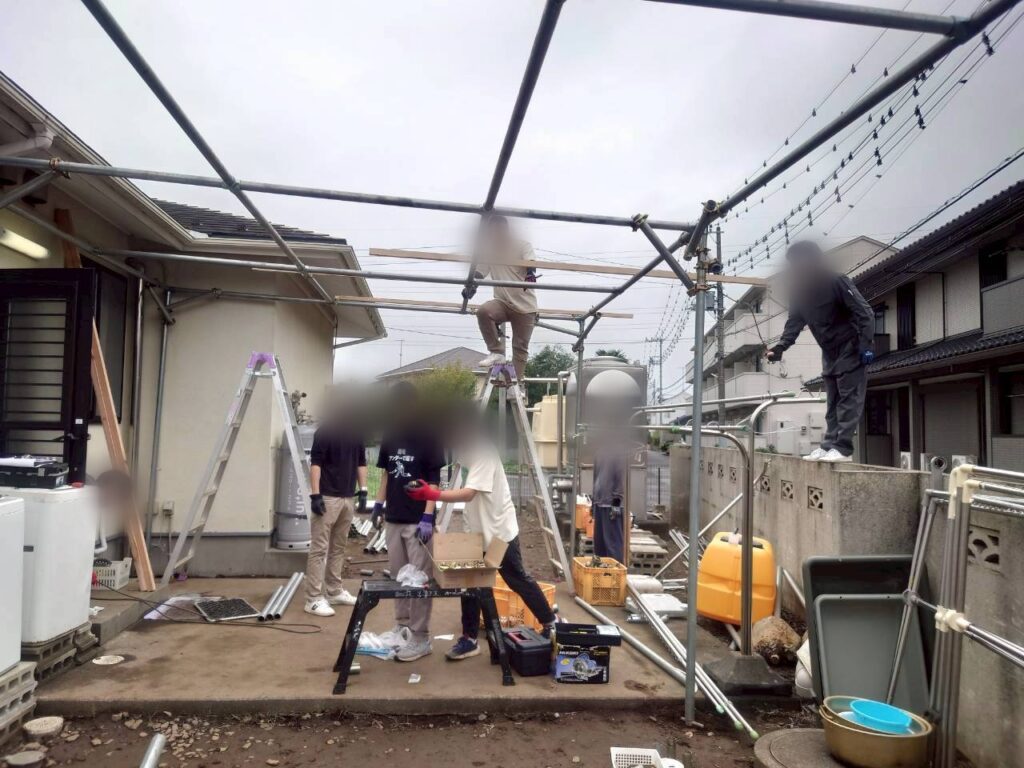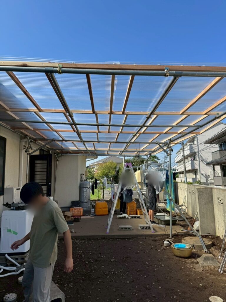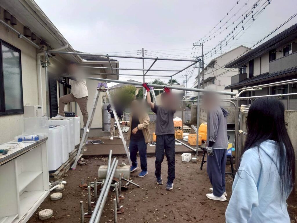 寮の裏庭に屋根を付けました‼️雨でも洗濯物は無事…………かも?w