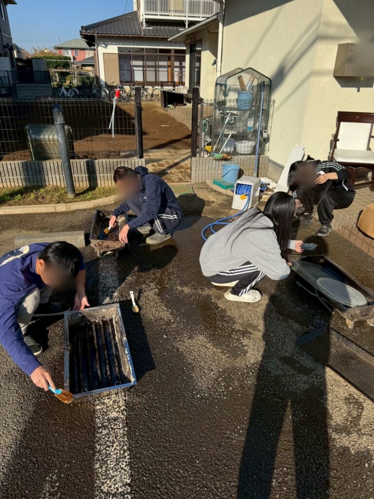 んが、倉庫に置いておいたので一旦全部洗って使えるように前準備😀木炭や食材、テーブル、庭の土を整地して準備おっけぃ👌