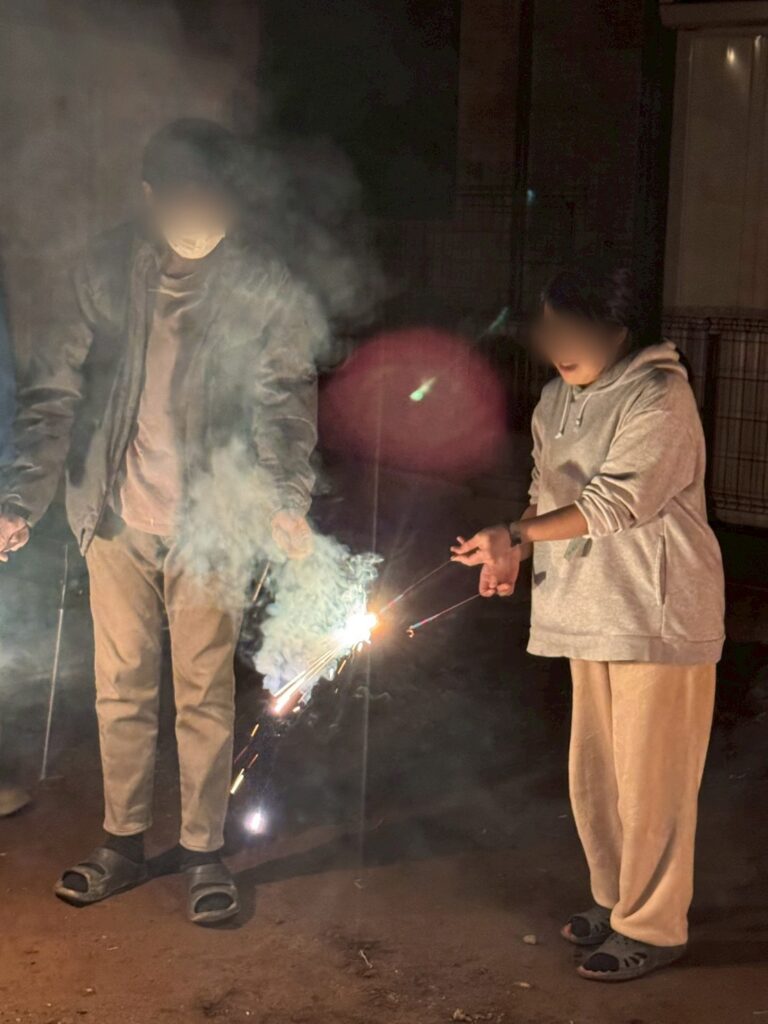 花火🎇をやるぞー‼️ってことで全員庭に集合して手持ち花火や地面に置いて楽しむタイプの花火をやりました😀