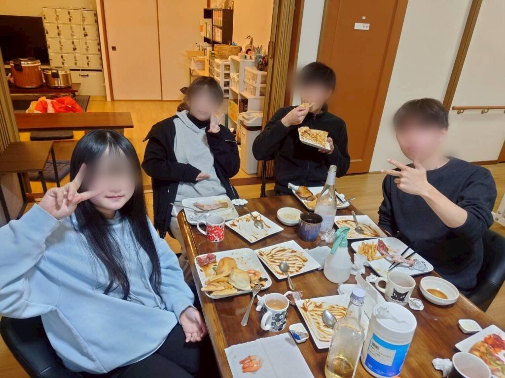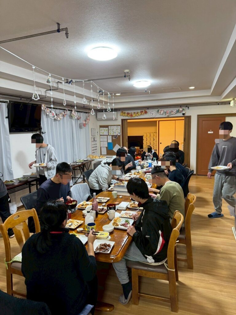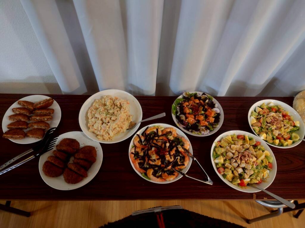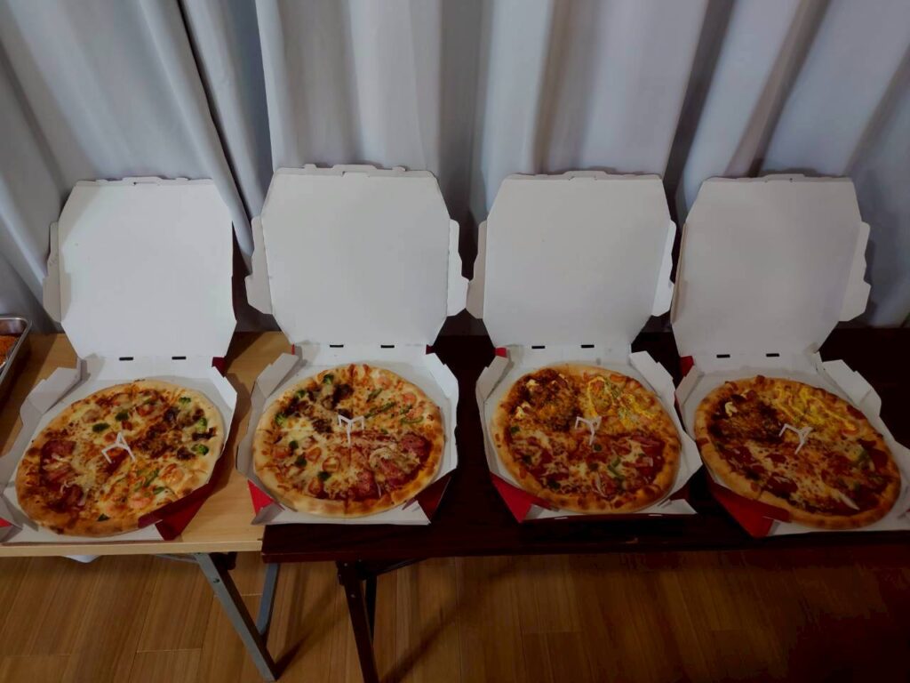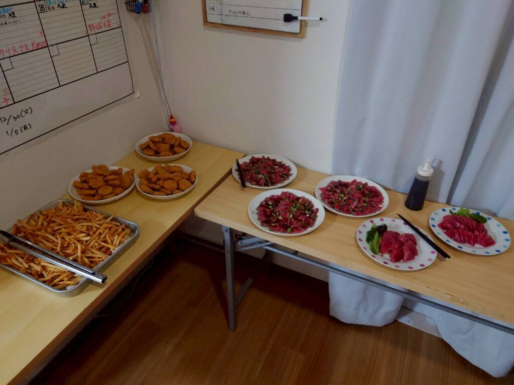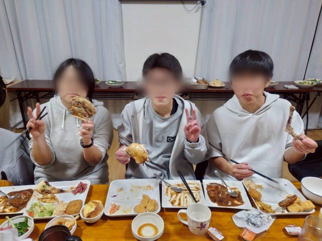 会場セッティングも生徒達で決めてバイキング方式で😀今年はちゃんと1列に並んで料理を取ってまして、しかも去年はピザが食べられなかった人が多数出てたんですが、今年は声かけもあり皆ちゃんと後々の人のことも考えて取り分けてました☺️