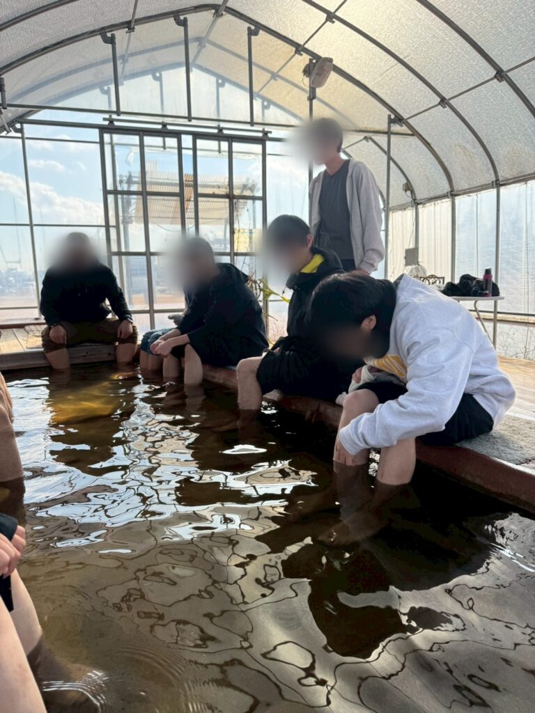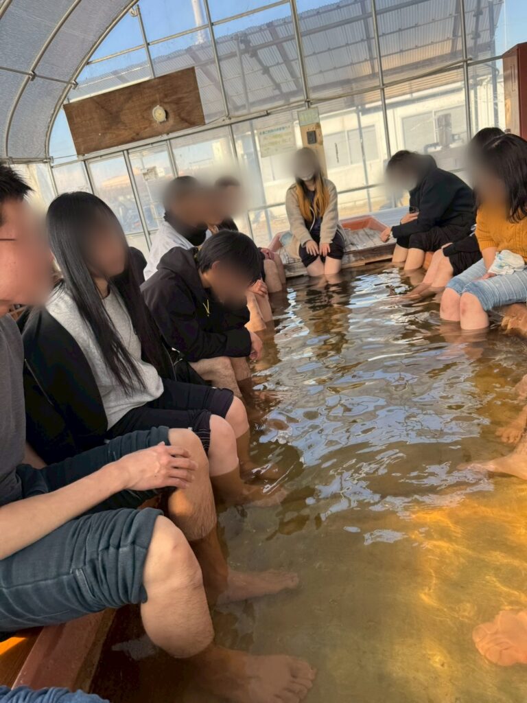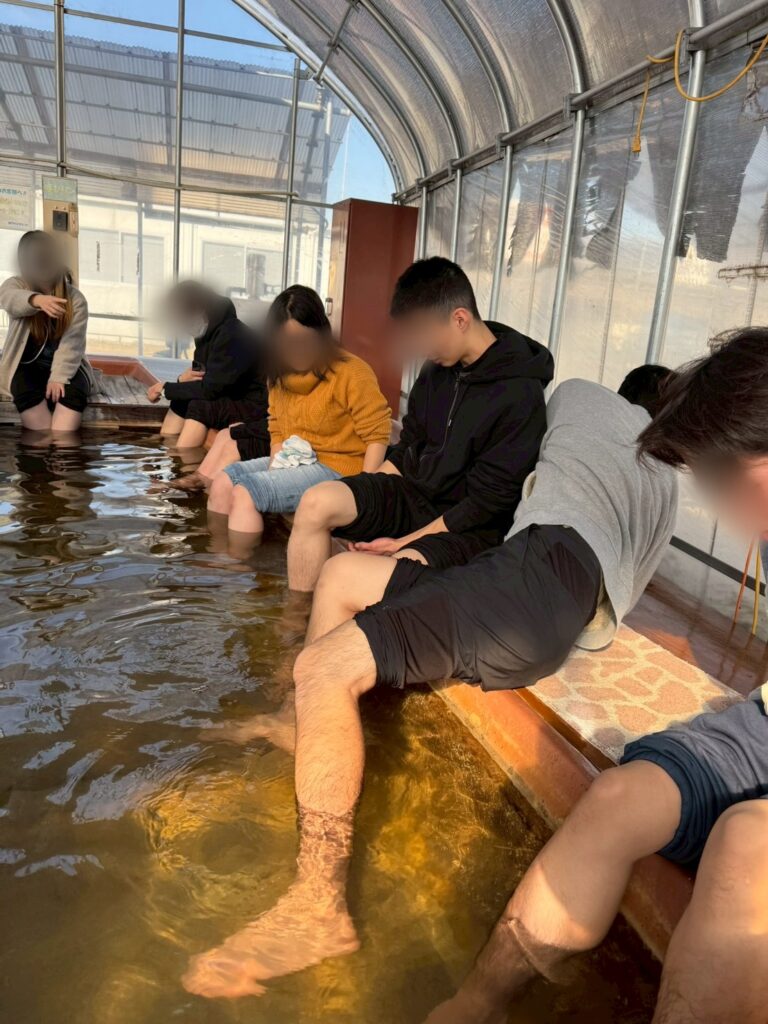 仕事行ってる生徒と学校行ってる生徒は初の足湯体験😆