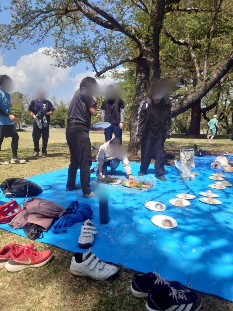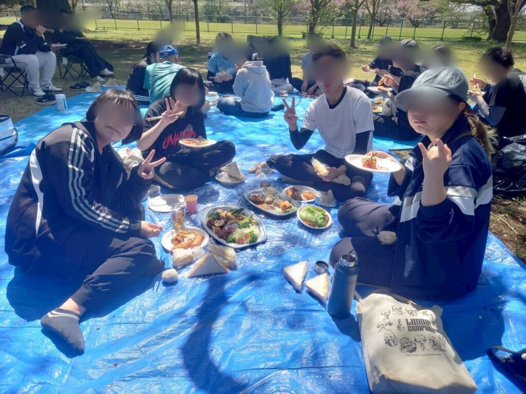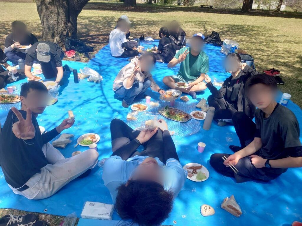 桜は全散りではなかったけど、かろうじて残った桜🌸でお花見をしながらキャッチボールしたり、フリスビーしたり、バドミントンしたり…大勢でドッヂボールしたり生徒達は盛り上がっていましたよ〜😎👍